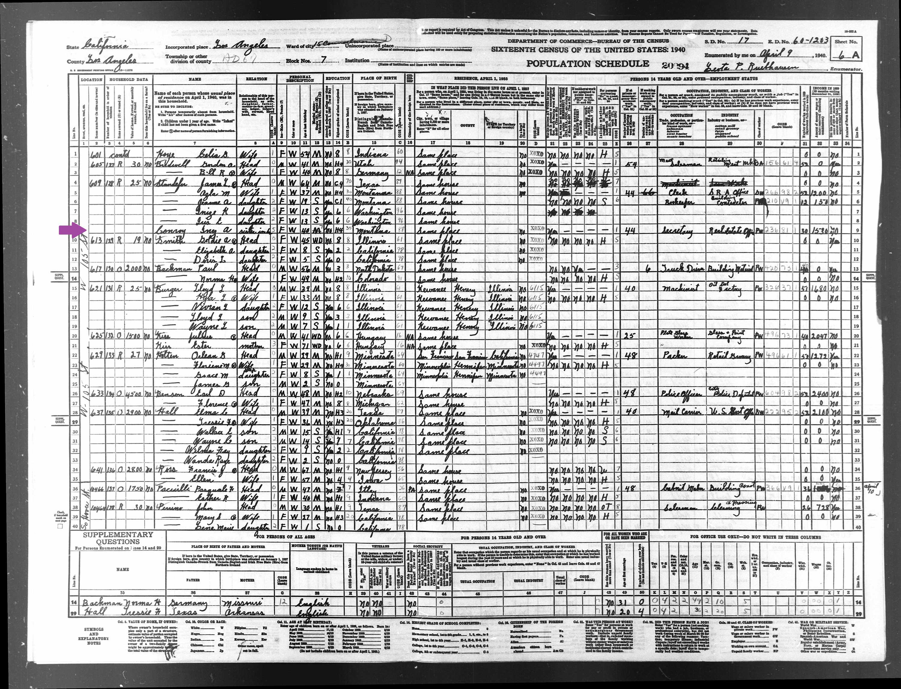 together any more at that time and Inez name is no more Scott (). She lived with her sister Azalea's family, 609 West 10th Street, Los Angeles, from 1935 to 1940 (at least). In 1940 she worked as a