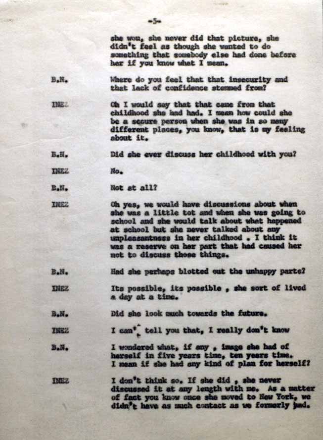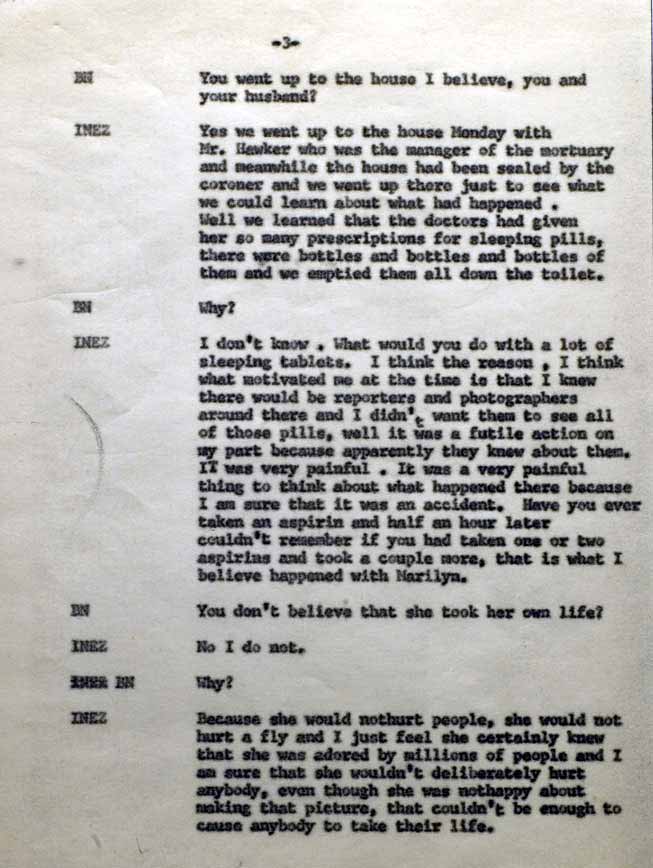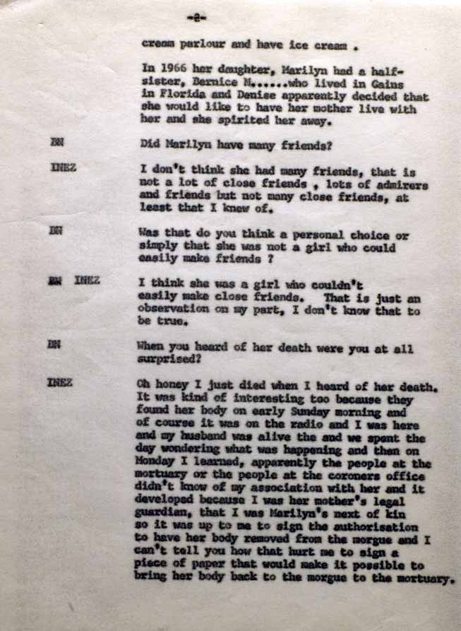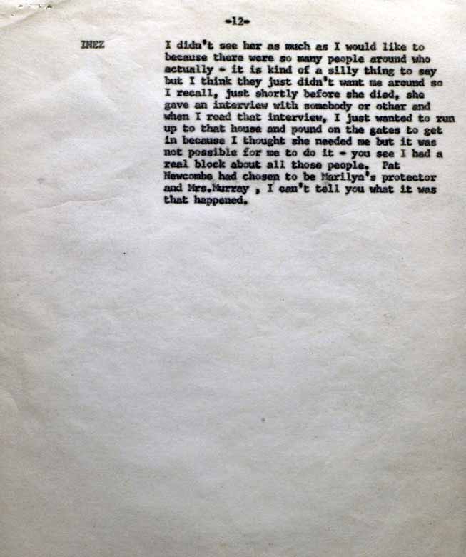 On August 7, 1962, she went to Marilyn's home, to take the clothes worn in her casket; she was accompanied by Berniece Miracle and Eunice Murray