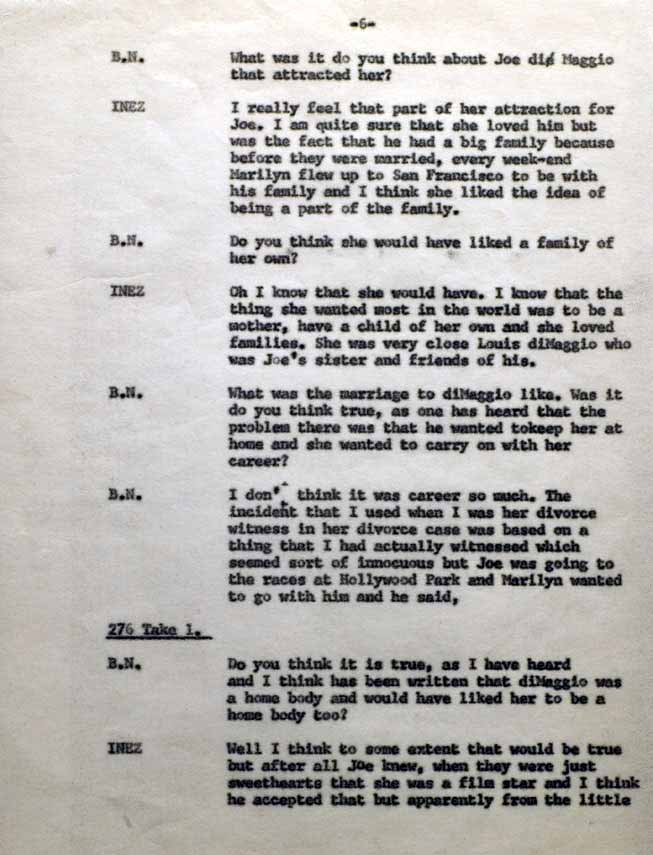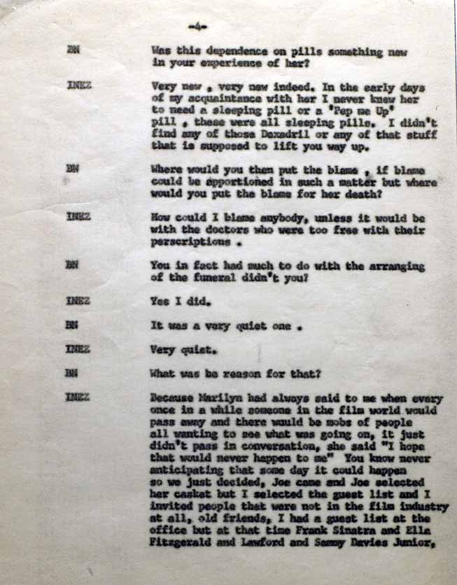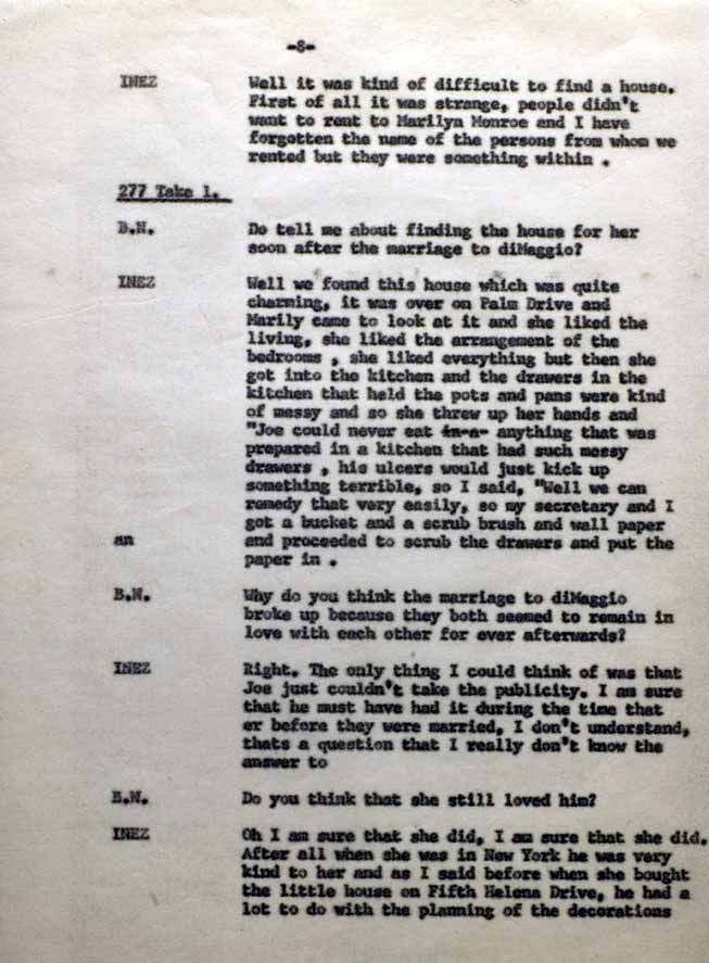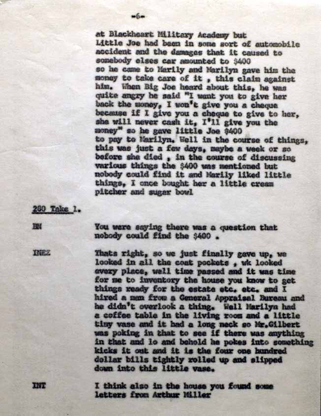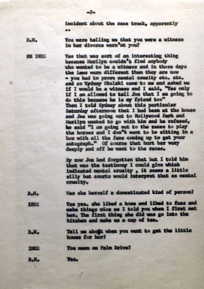 On October 27, 1954, she testified in favor of Marilyn against DiMaggio when they divorced, at the Santa