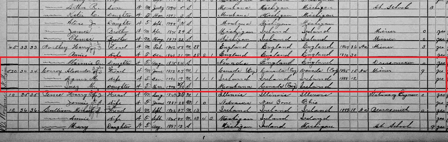 * 1900 : Butte City, Silver Bow County, Montana ()