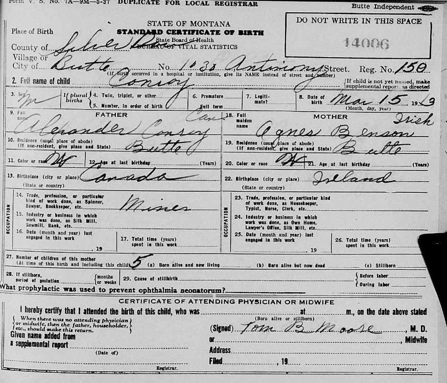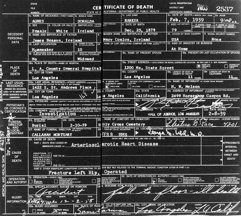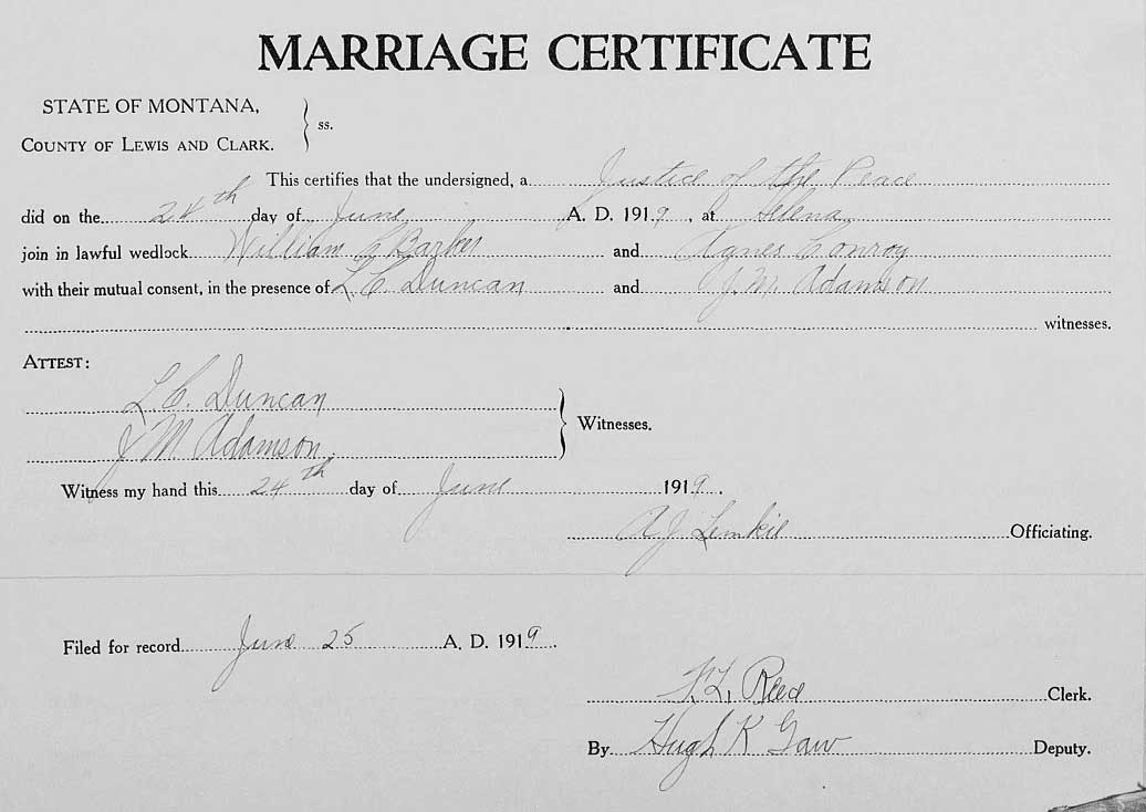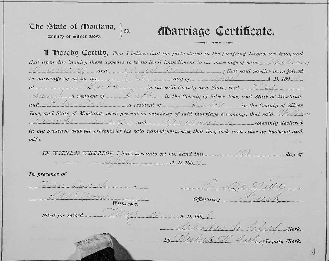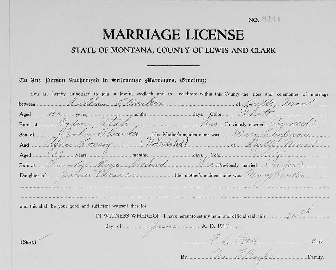 Widow, Agnes remarried on June 24, 1919, in Butte, Montana with William C.Barker (-