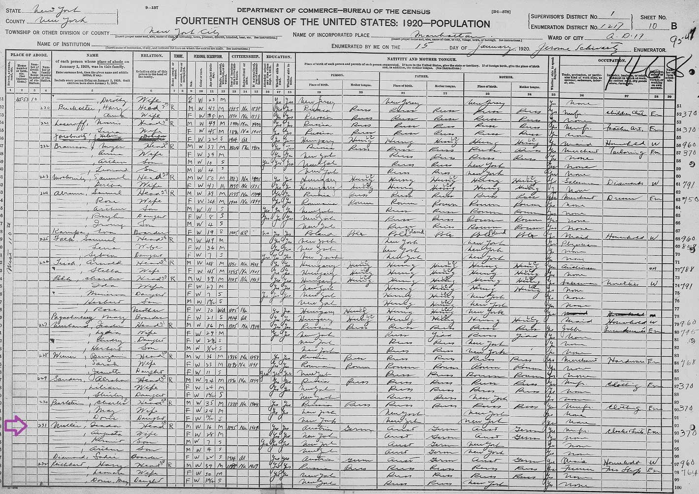Her parents were Aaron Louis Barnett (1861, Austria-September 1st, 1941, New York) and Rose Leibel (1855, Poland-February 10, 1940, New York). They emigrated in 1879 and married in 1881 in New York.