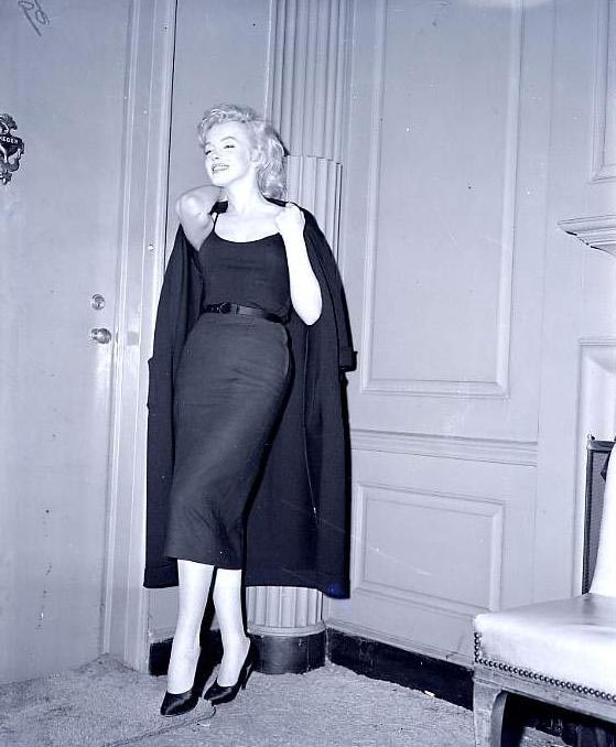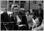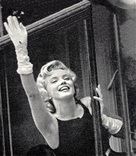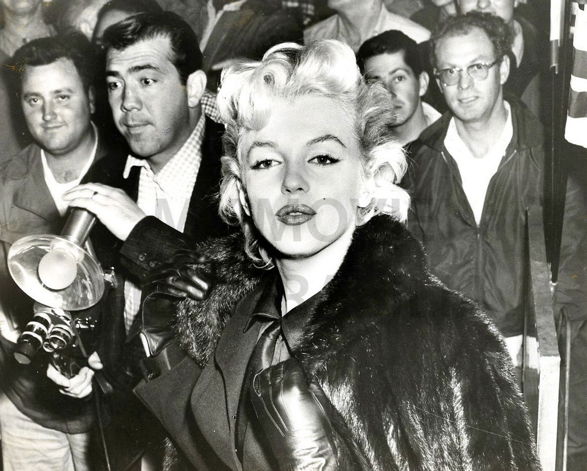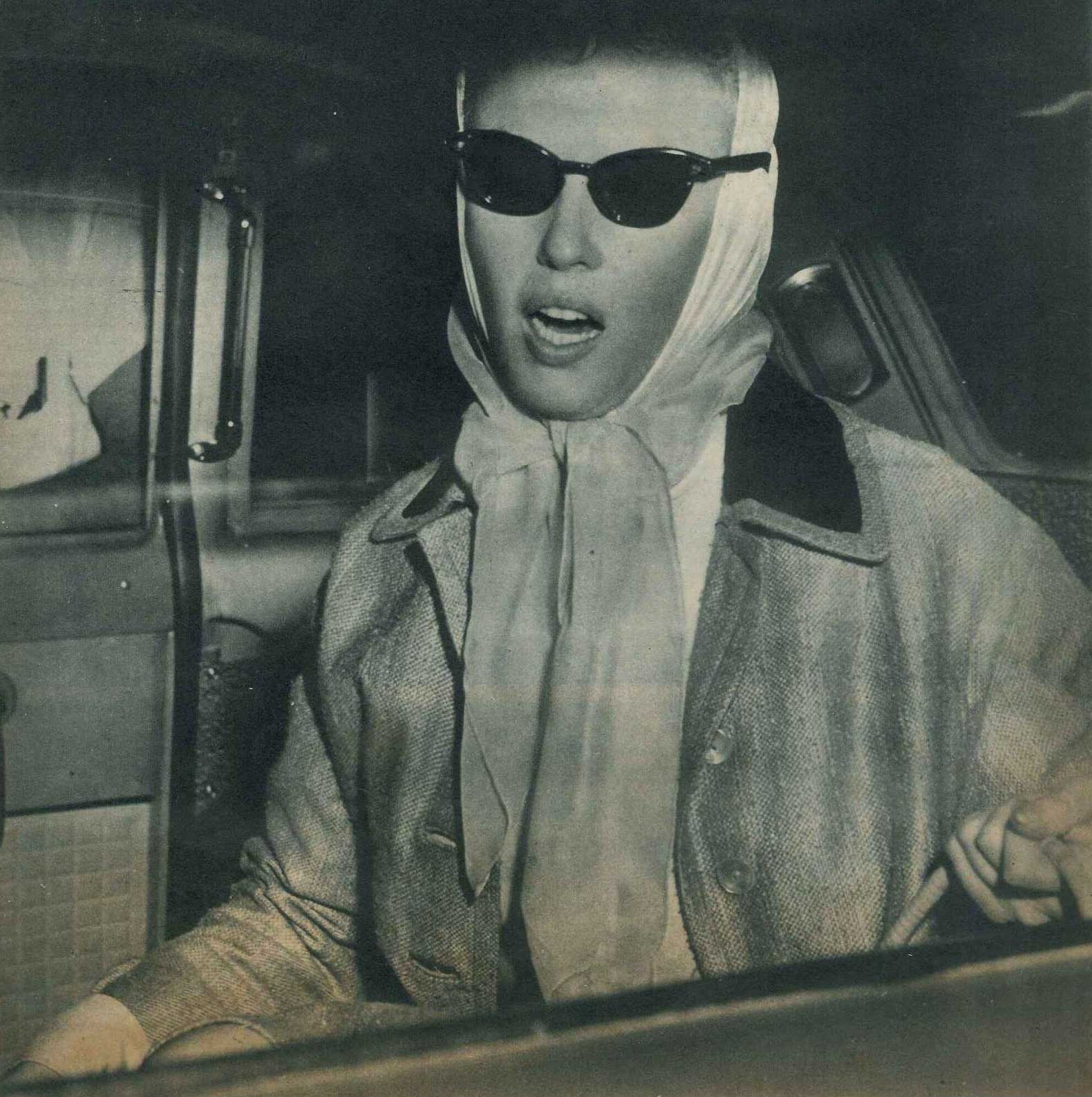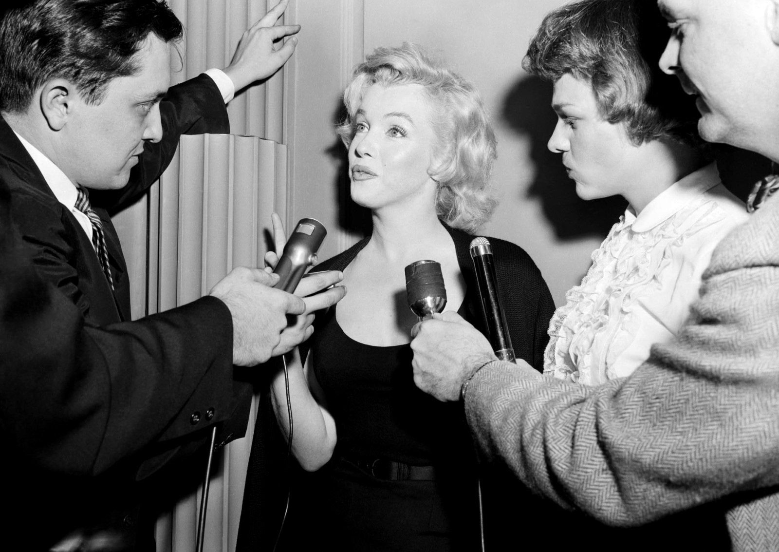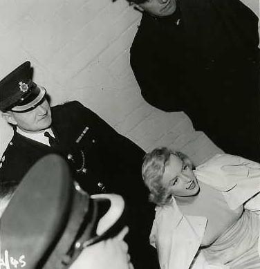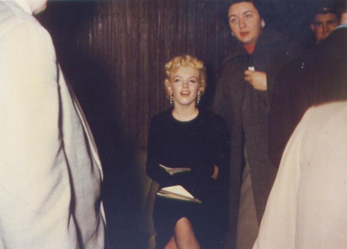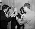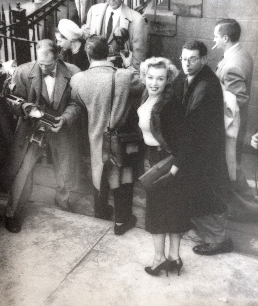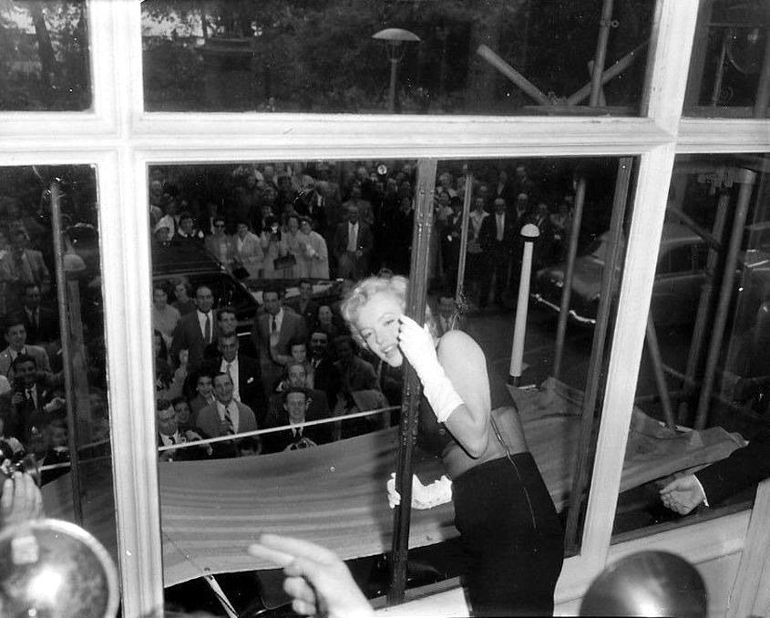 June 21, 1956, the reporters plaguing her, in the lobby of her building -