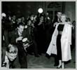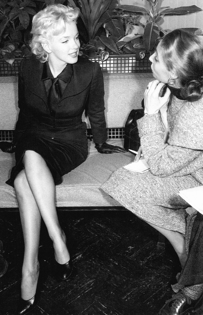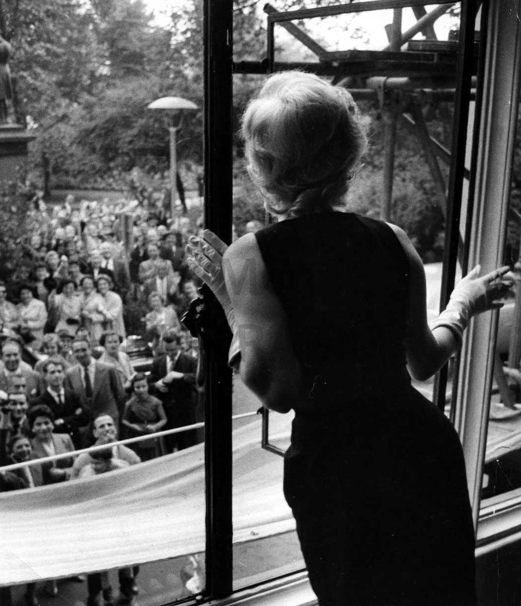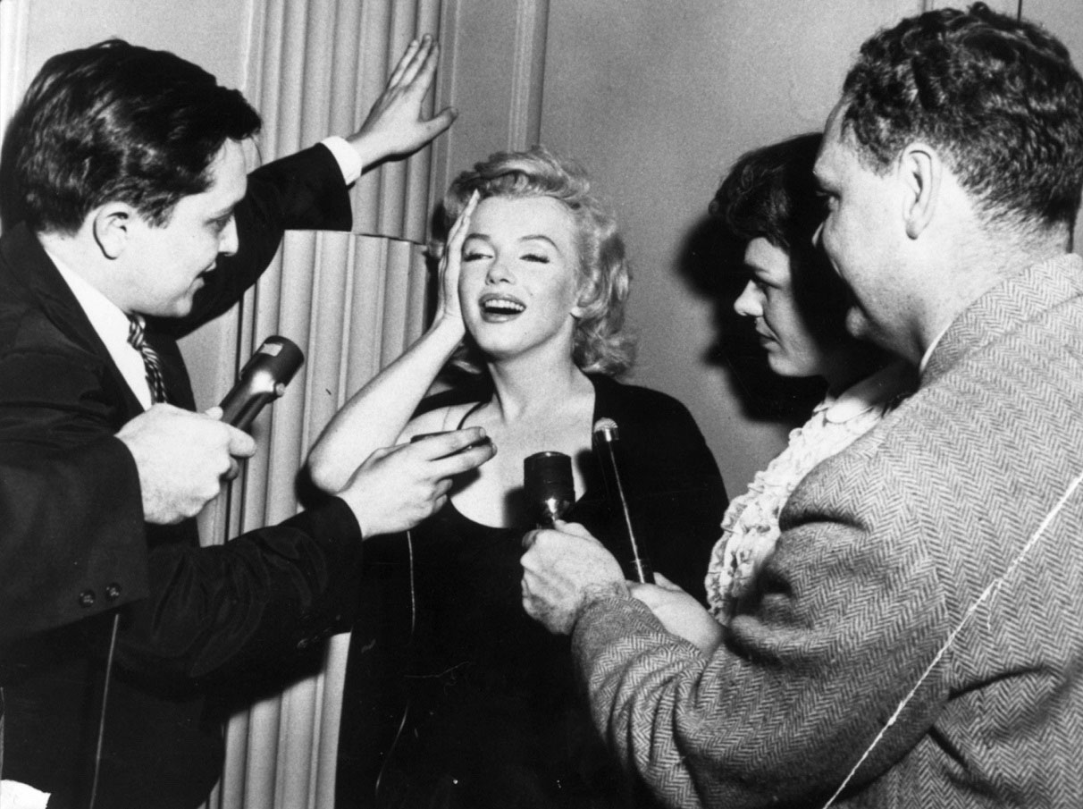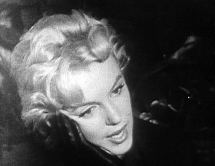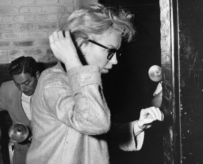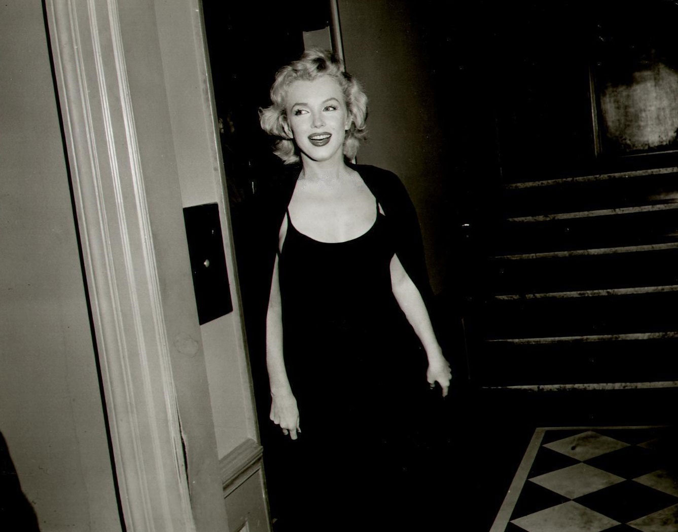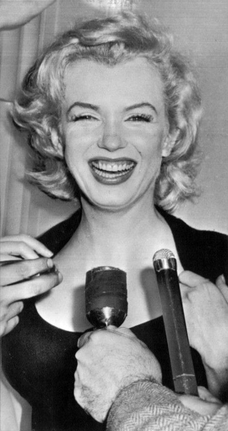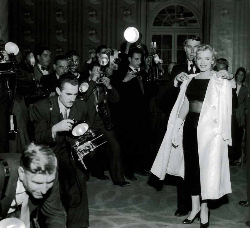 June 21, 1956, the reporters plaguing her, in the lobby of her building -