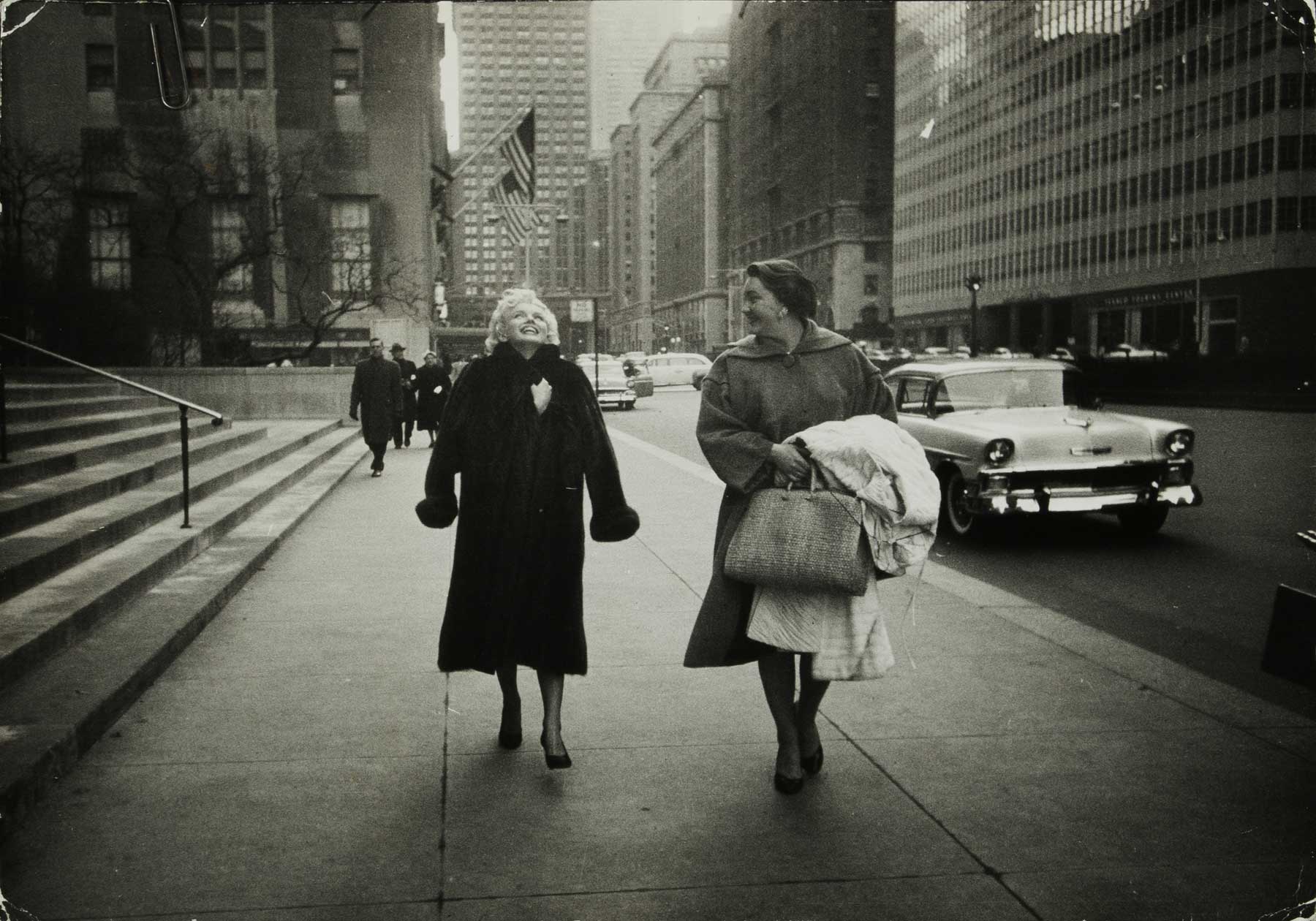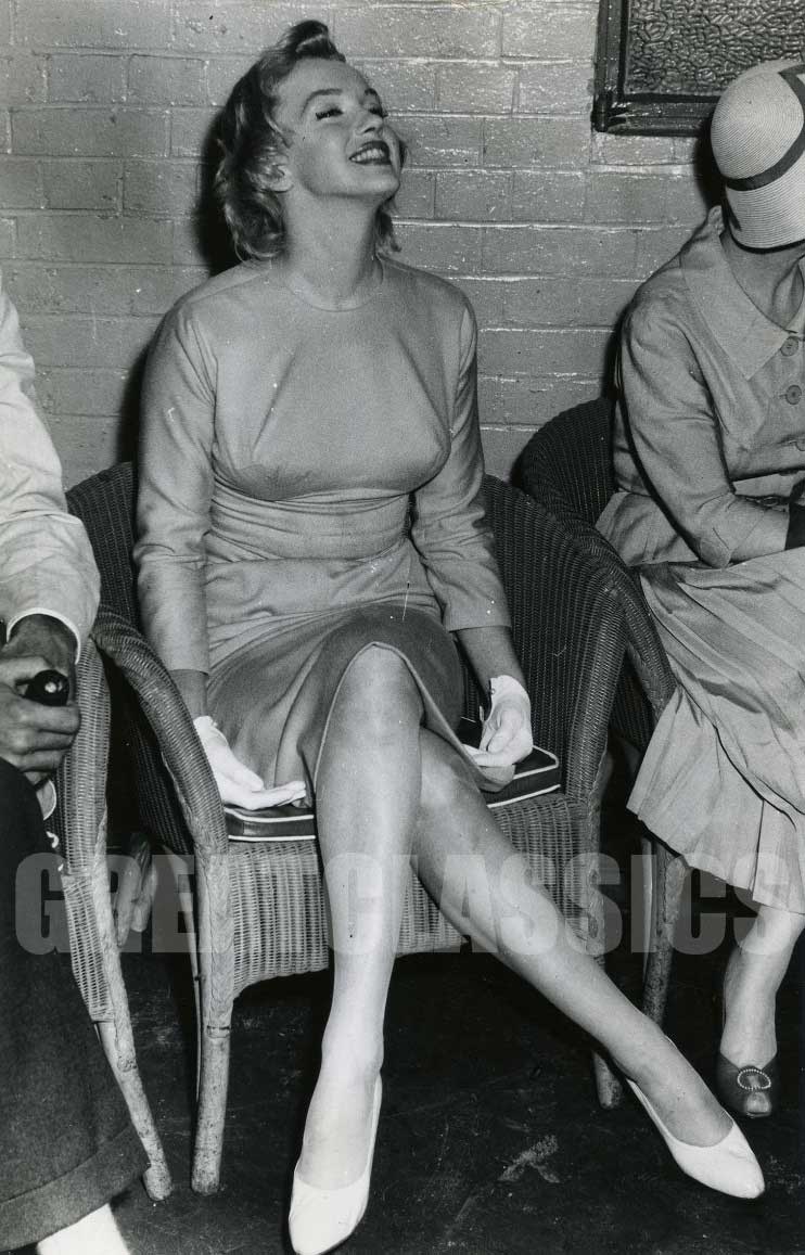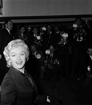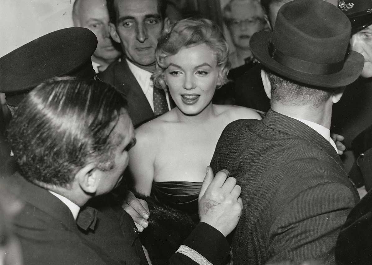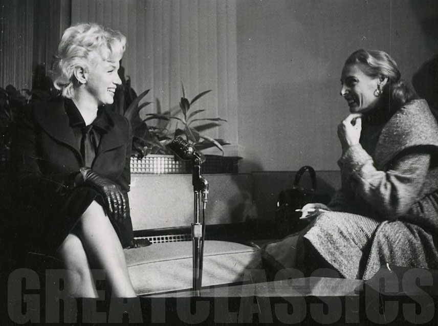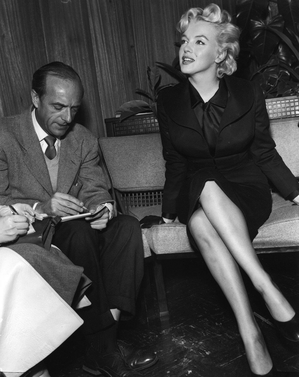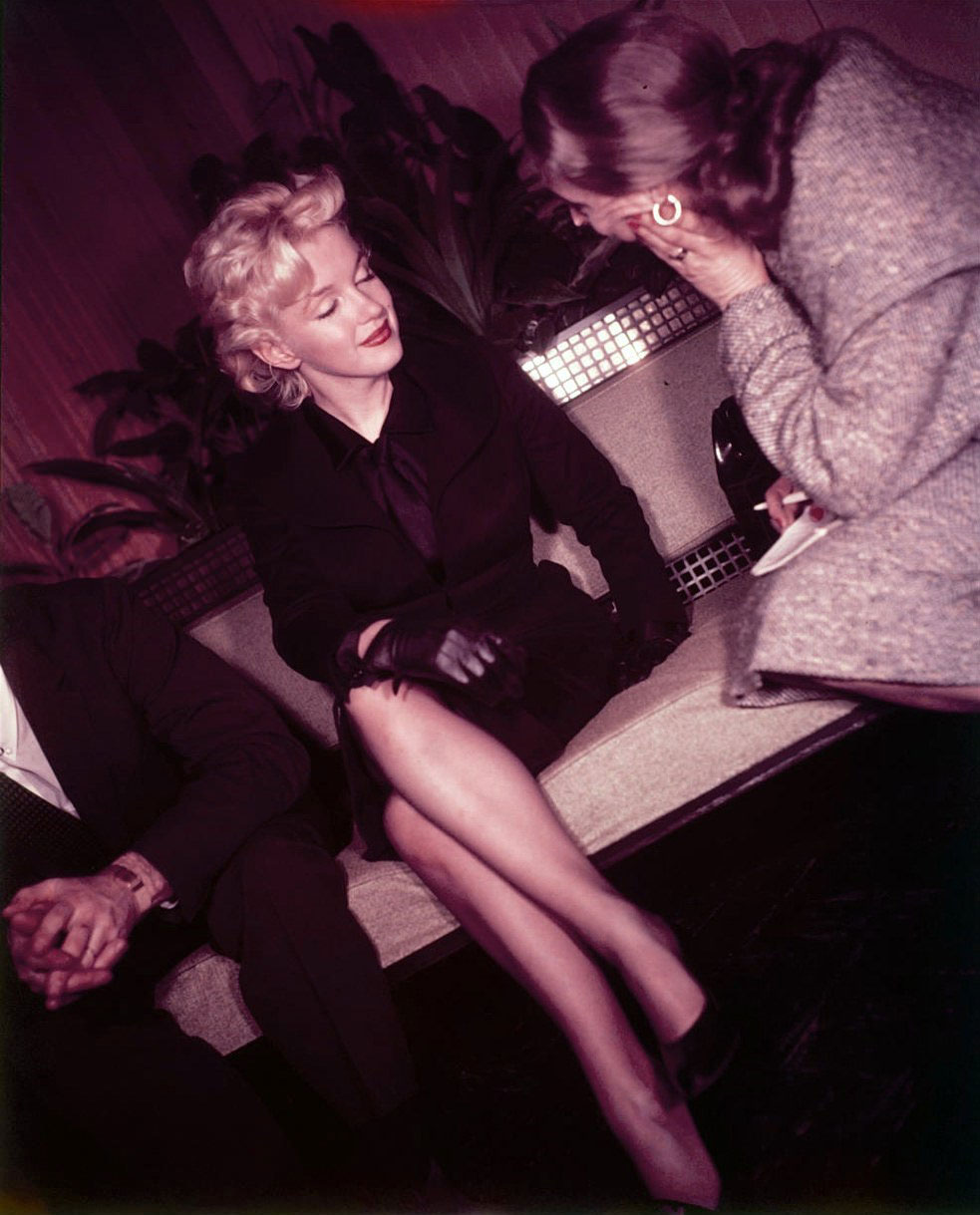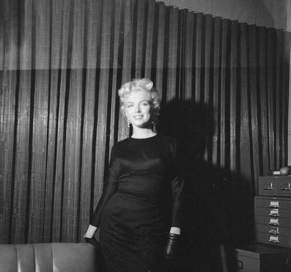June 21, 1956, the reporters plaguing her, in the lobby of her building -