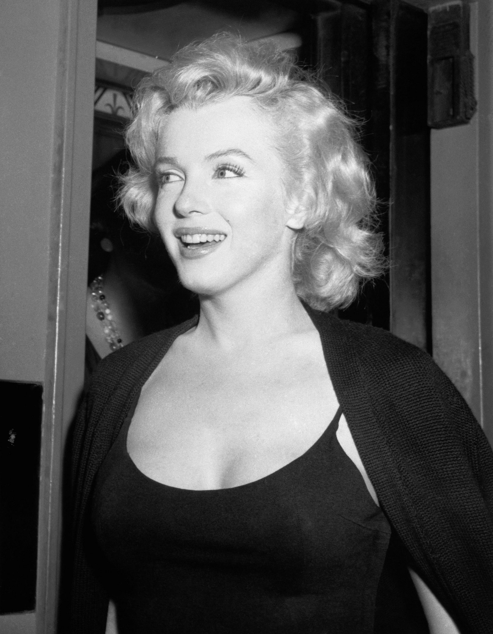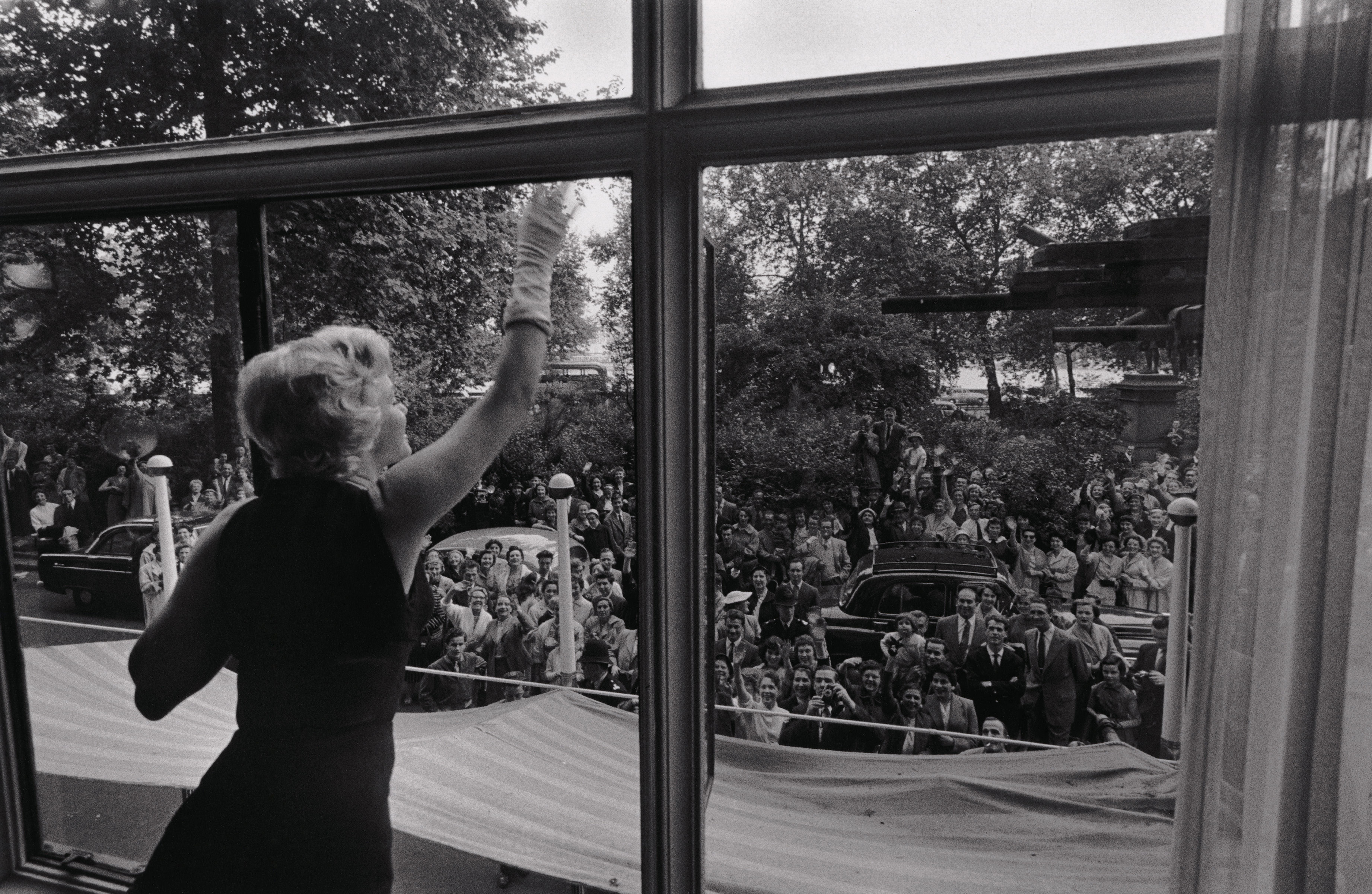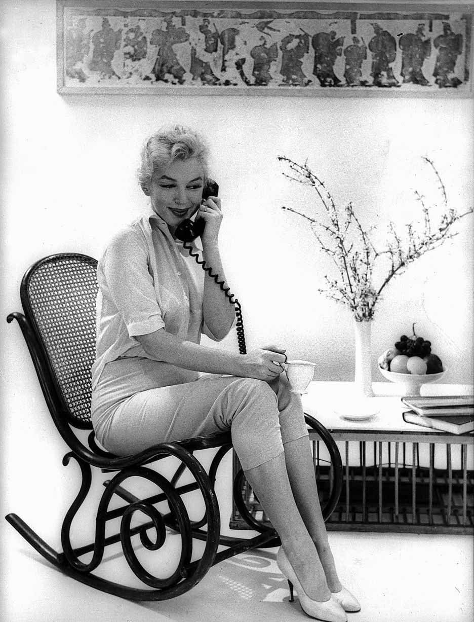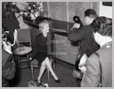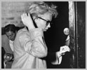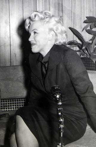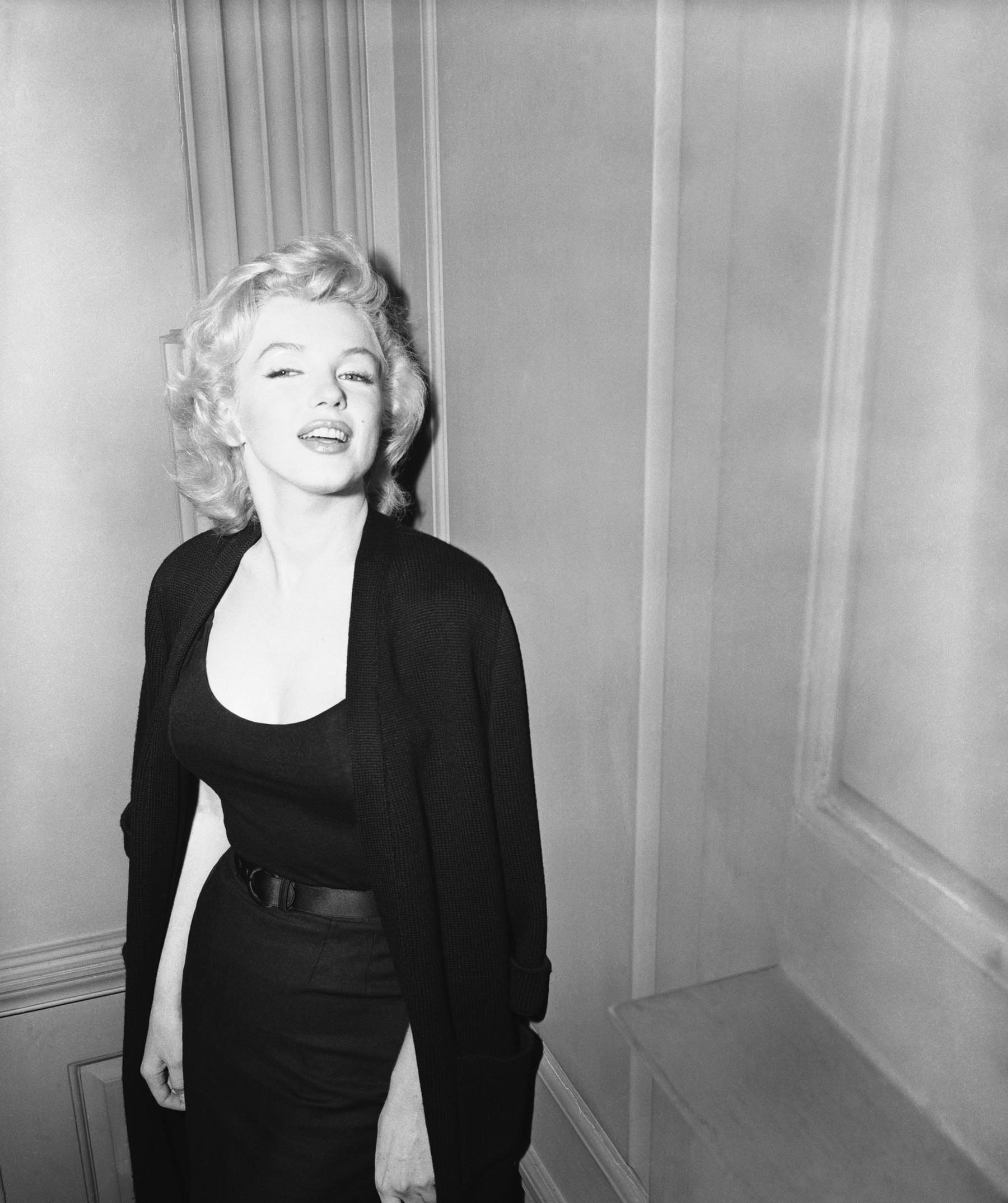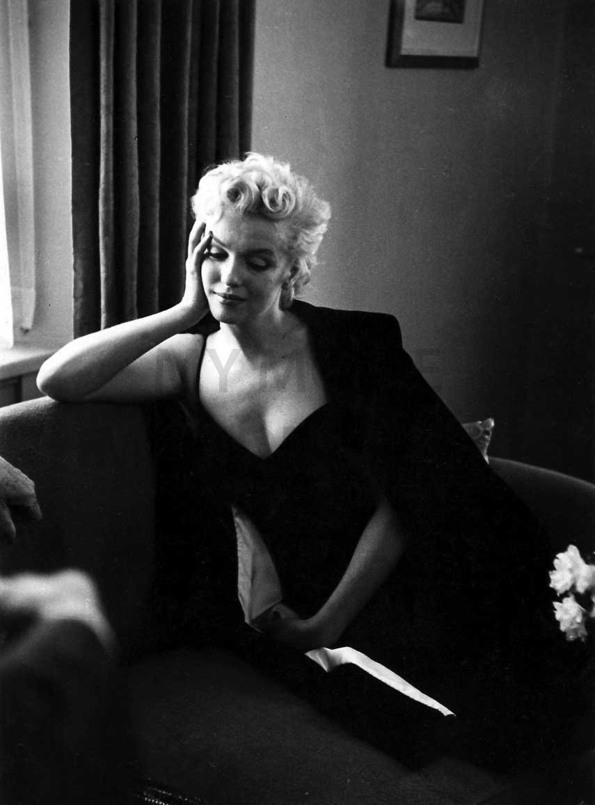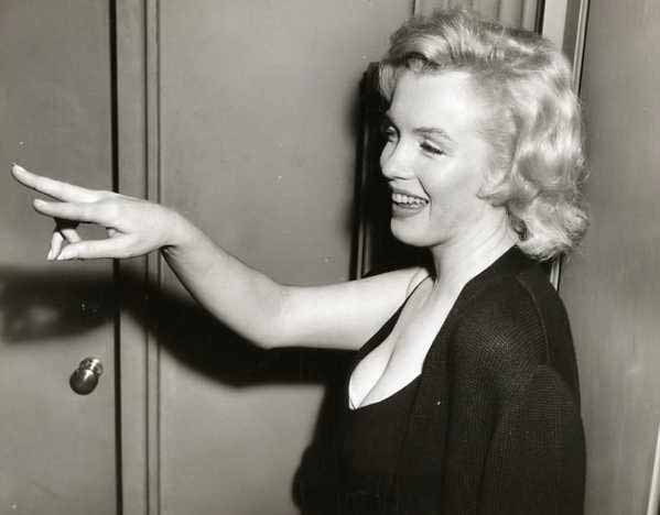 June 21, 1956, the reporters plaguing her, in the lobby of her building -