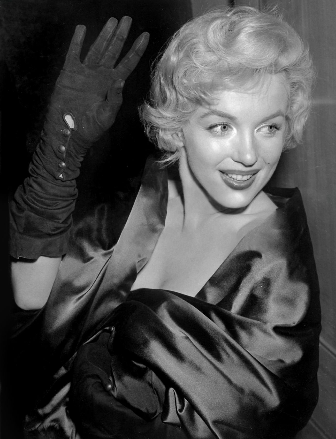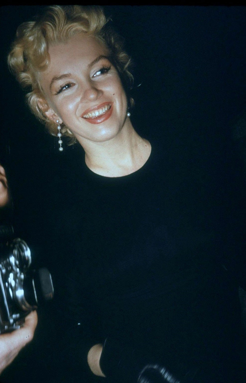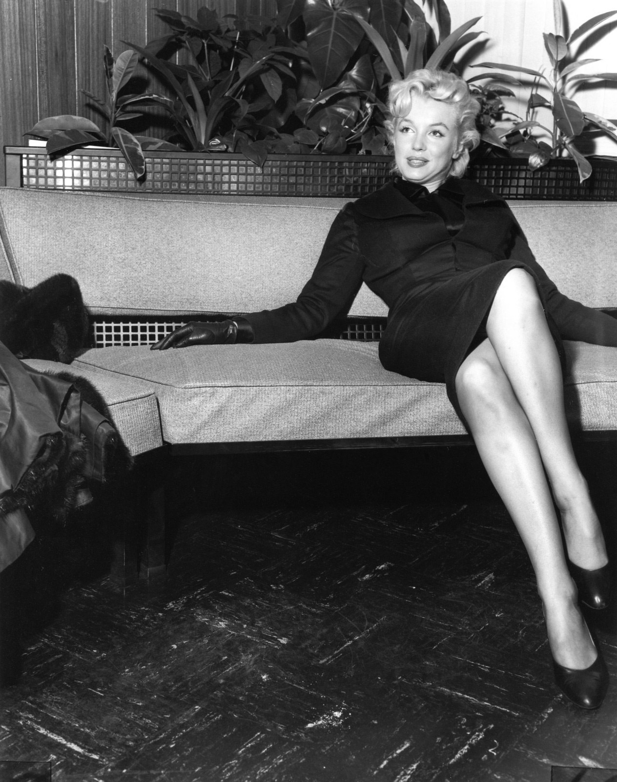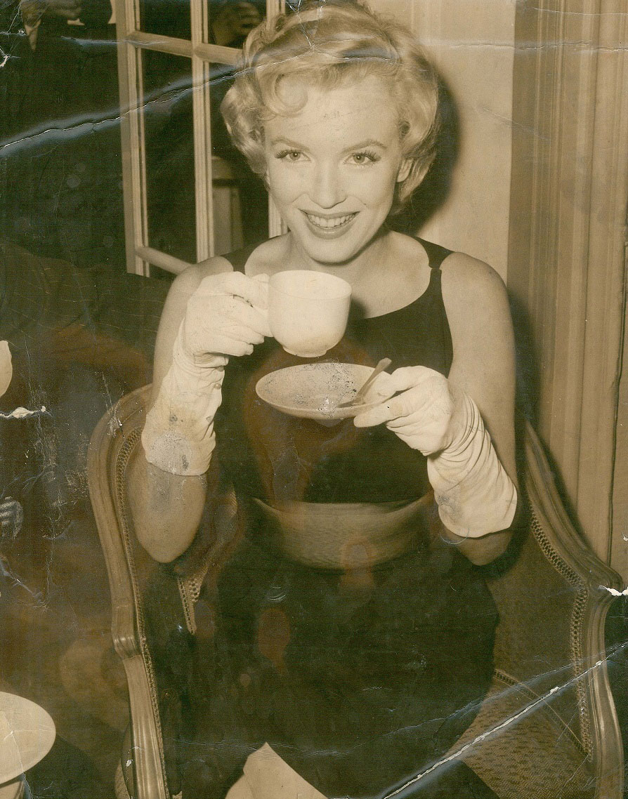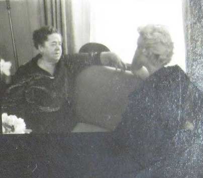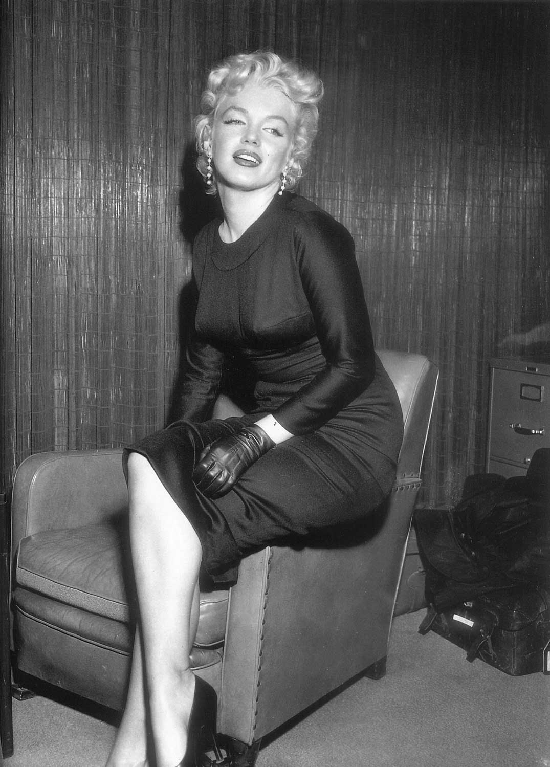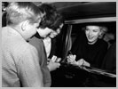 June 21, 1956, the reporters plaguing her, in the lobby of her building -