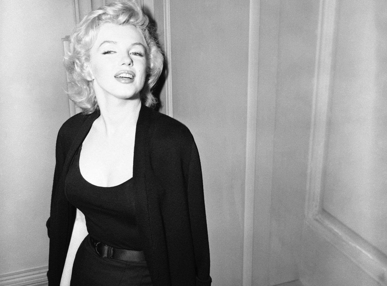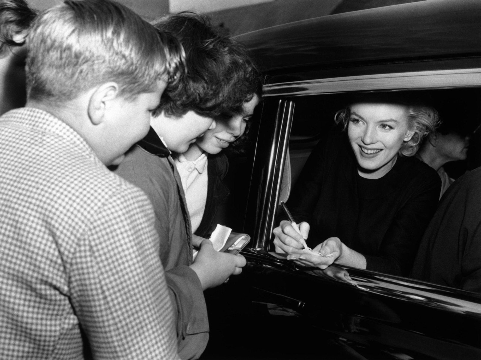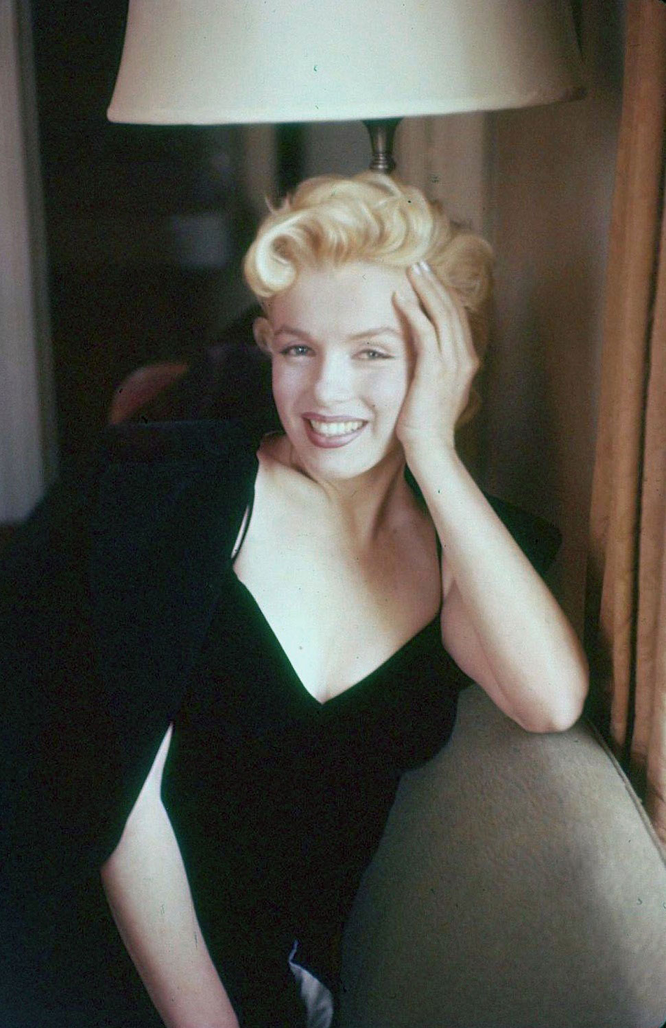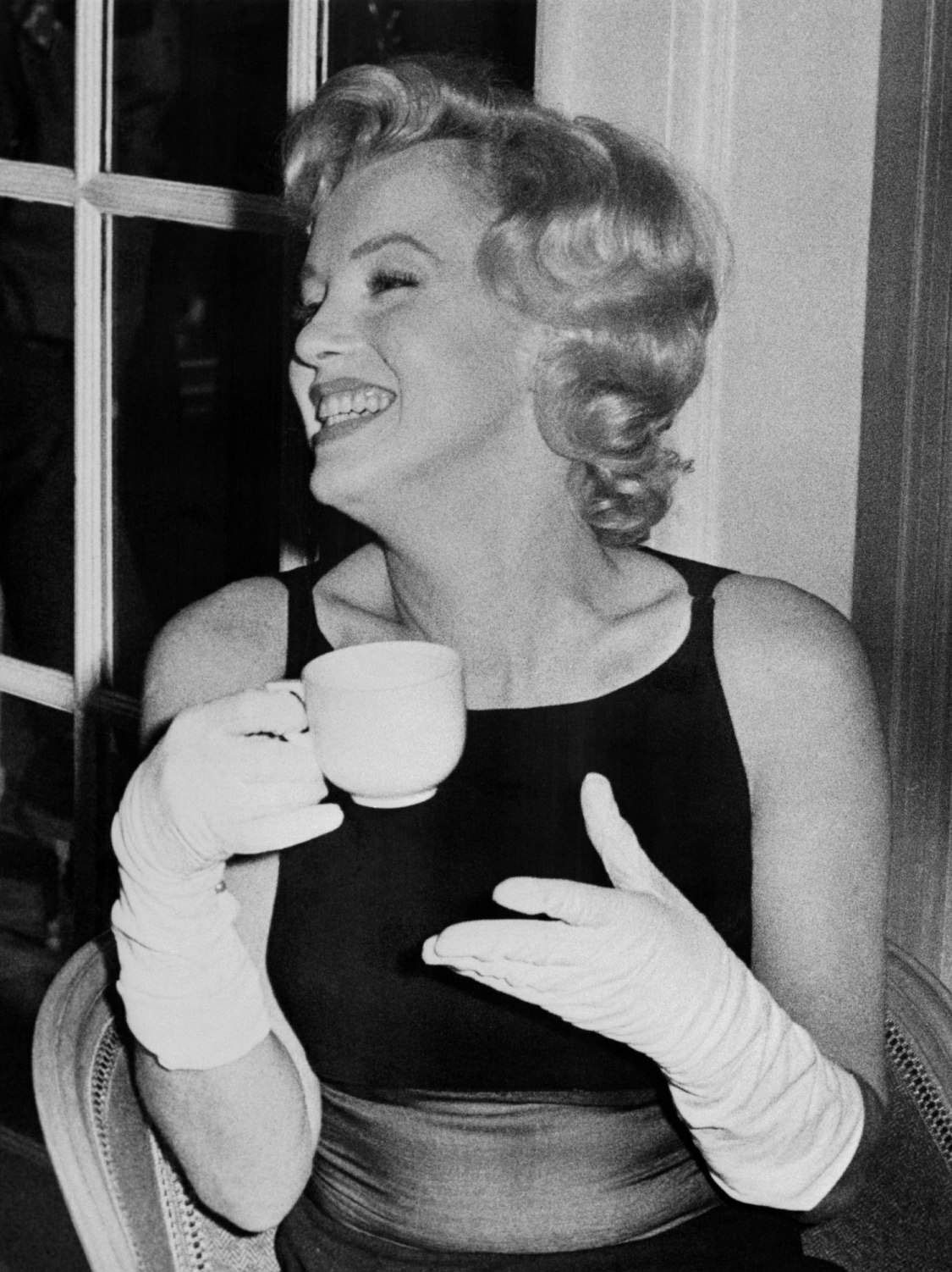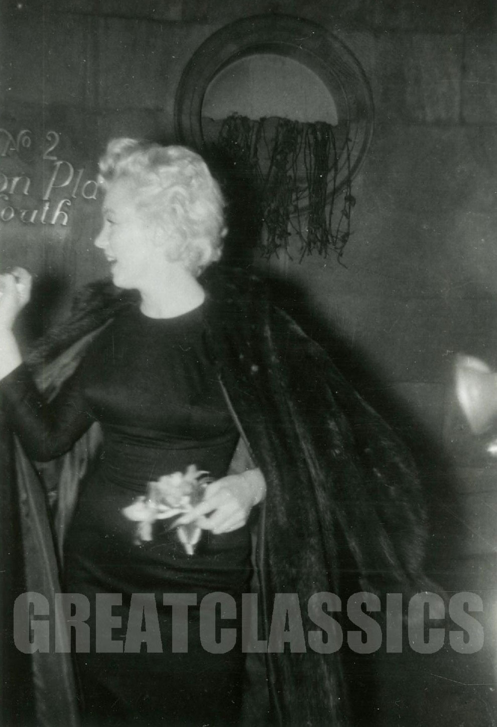 June 21, 1956, the reporters plaguing her, in the lobby of her building -