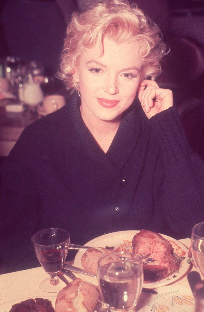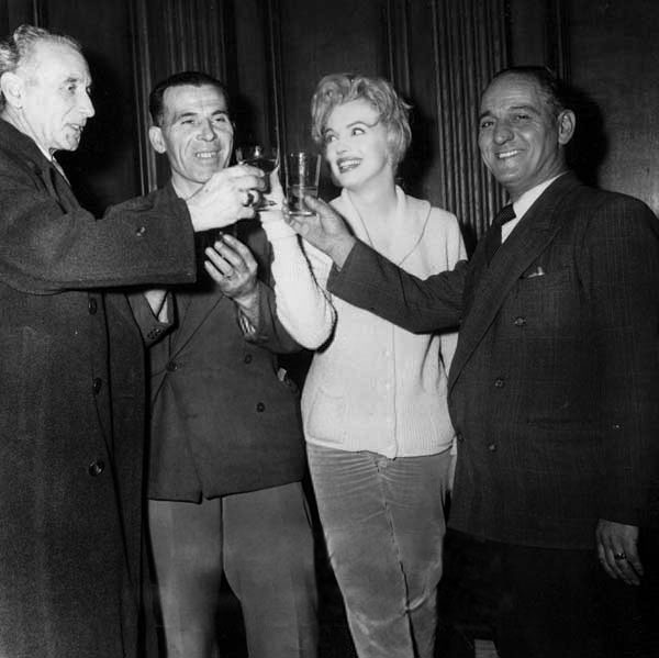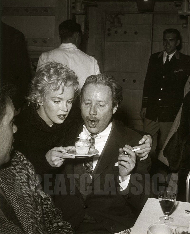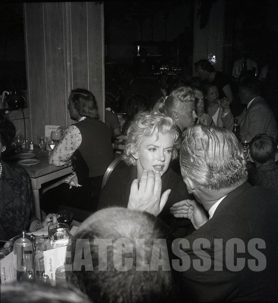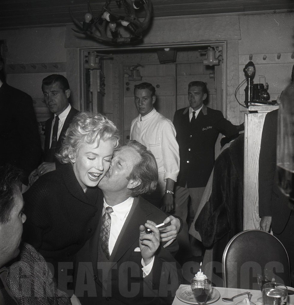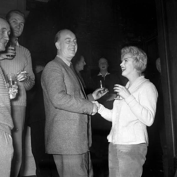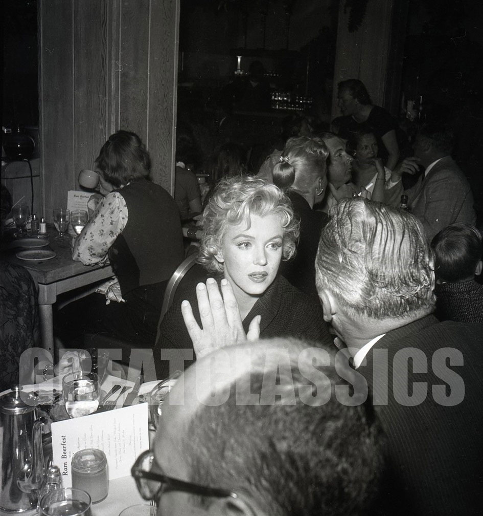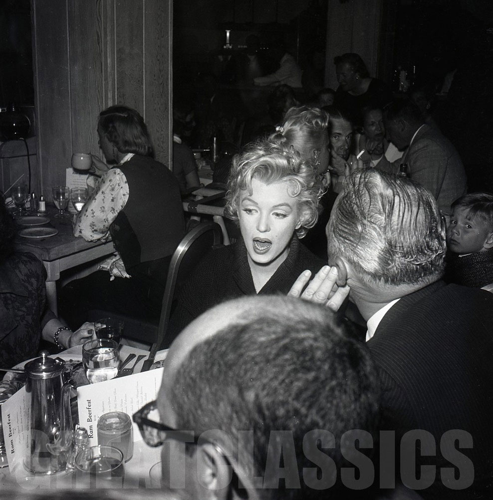 March 1956, at "The Ram" restaurant, Idaho, during the shooting of "Bus Stop", celebration of actor Athur O'Connell's birthday