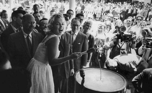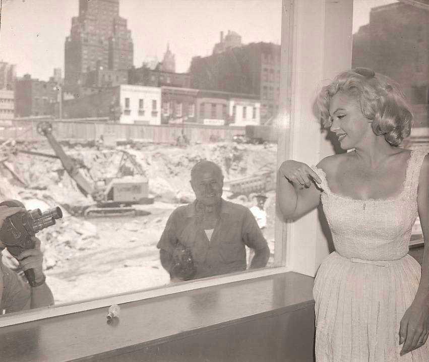 April 16, 1957, leaving the attorney office, after she elected a new board of directors for Marilyn Monroe Productions Inc.