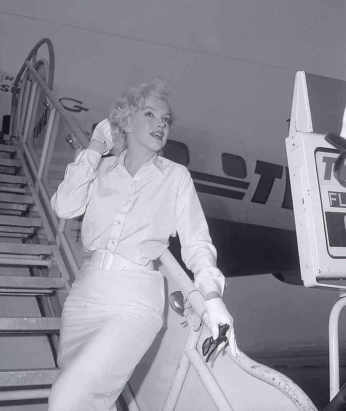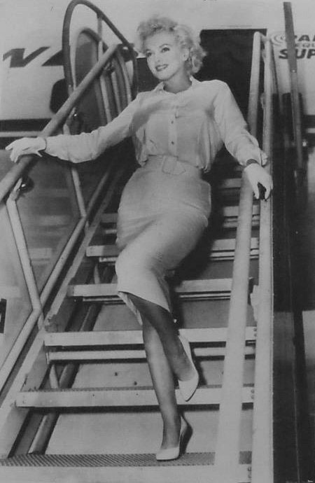 November 23, 1958, Idlewild Airport, back from the production of "Some Like It Hot" in Los Angeles ,