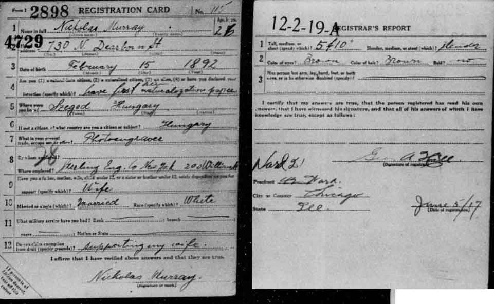 Le 13 août 1913, avec la menace de la guerre en Europe, il partit en bateau pour New York et débarqua à Ellis Island où il devint Nickolas Muray.