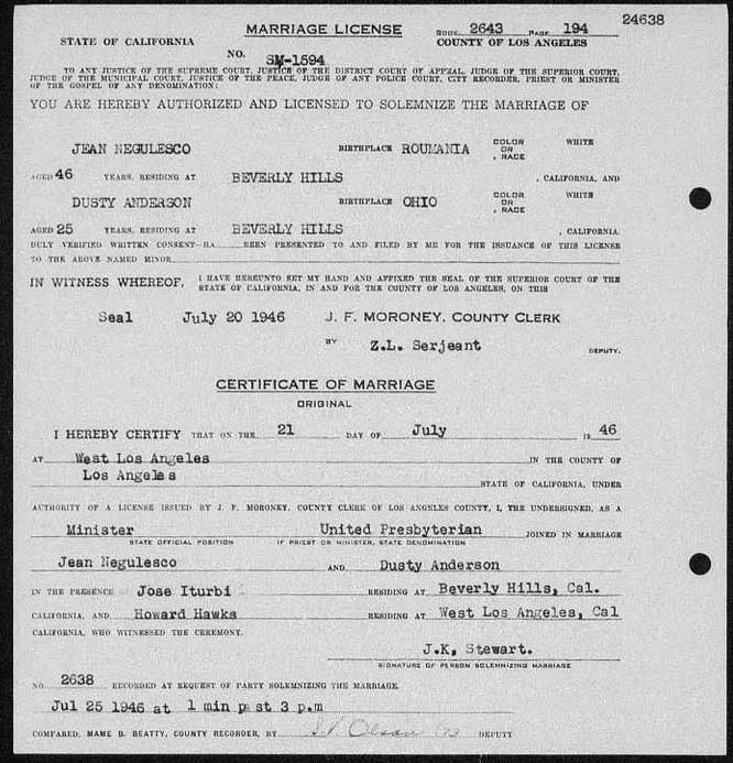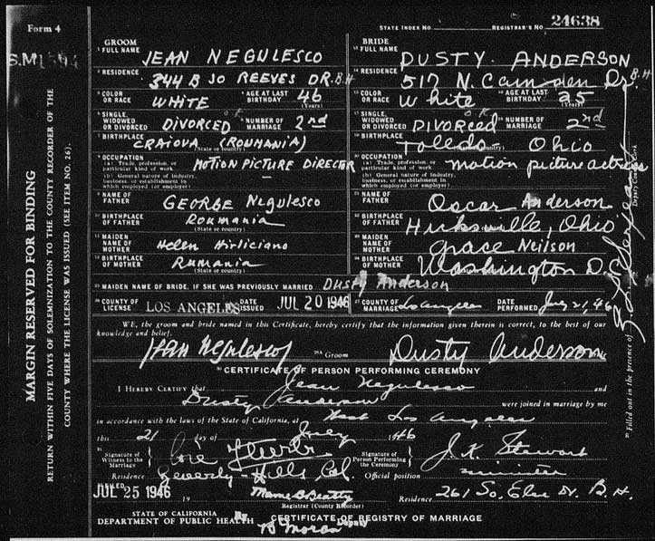 On July 21, 1946 he married Ruth "Dusty" Anderson (1916, Ohio-September 12, 2007, Spain)(