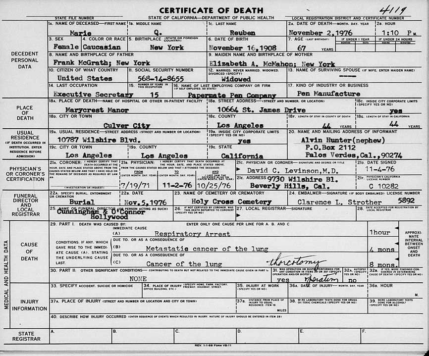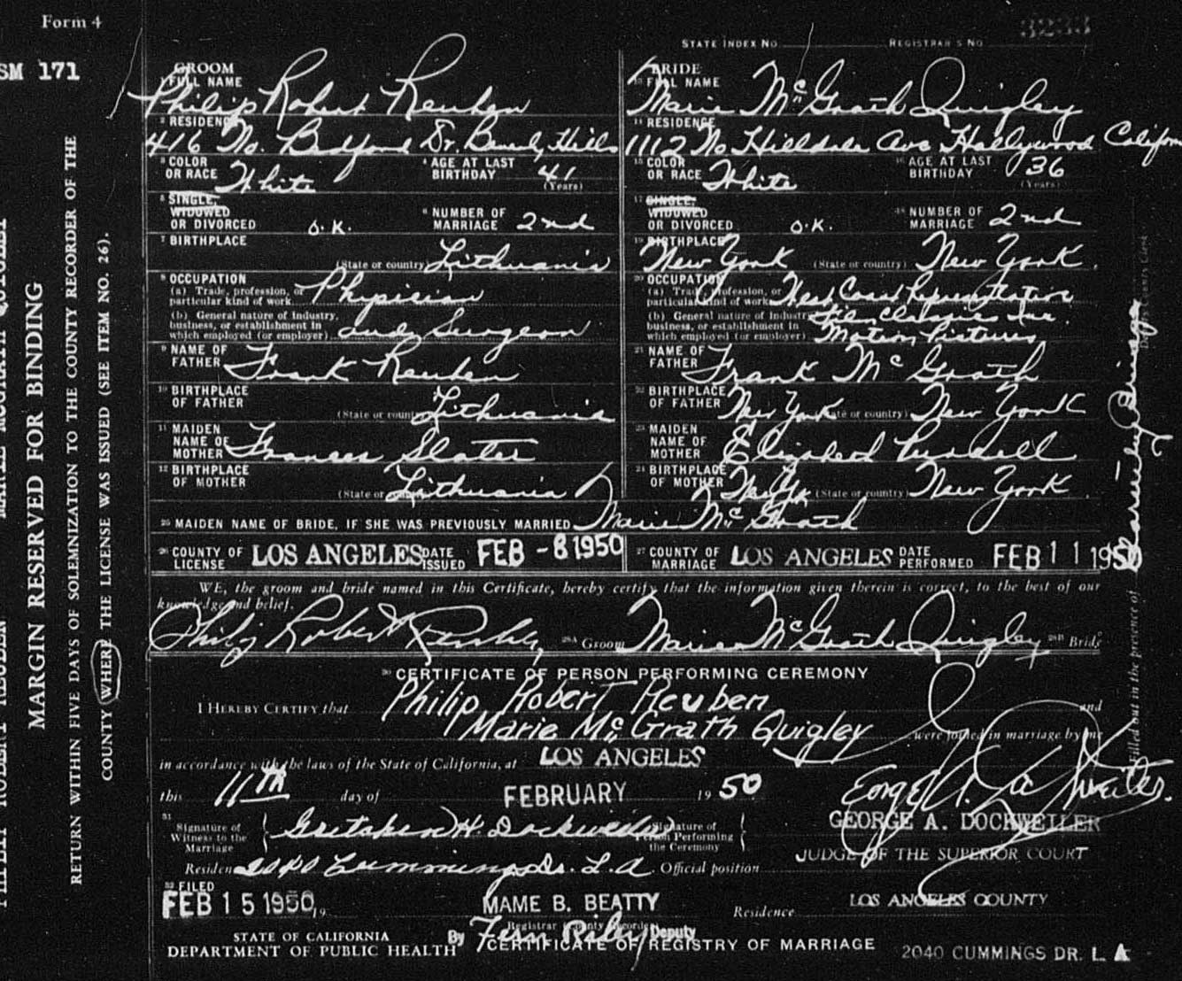 * années 50 : 416 North Bedford Drive, Beverly Hills, Room 214.