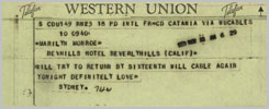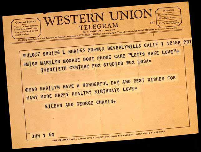 Telegram from Isadore Miller for Marilyn's birthday, probably in 1960