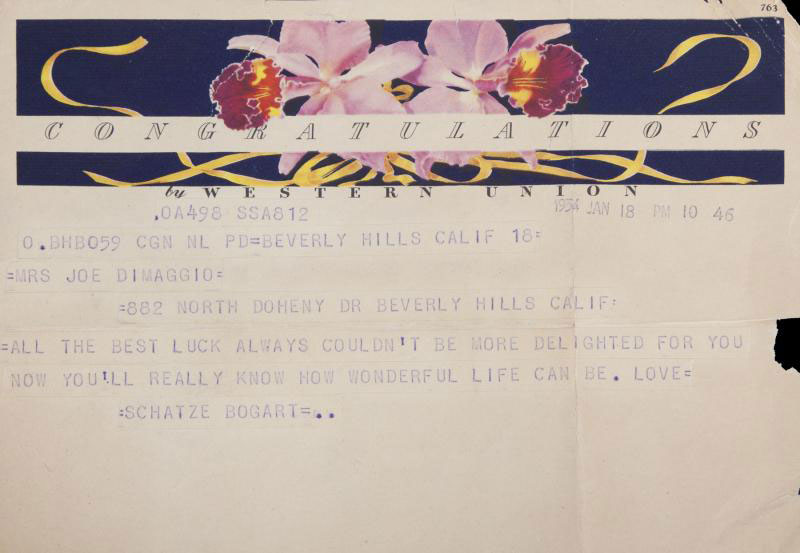 Telegram dated January 18, 1954 sent to Marilyn from Lauren Bacall