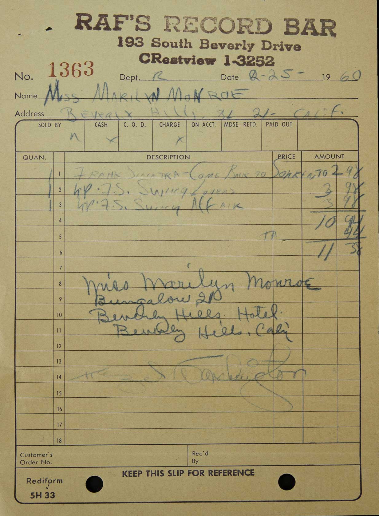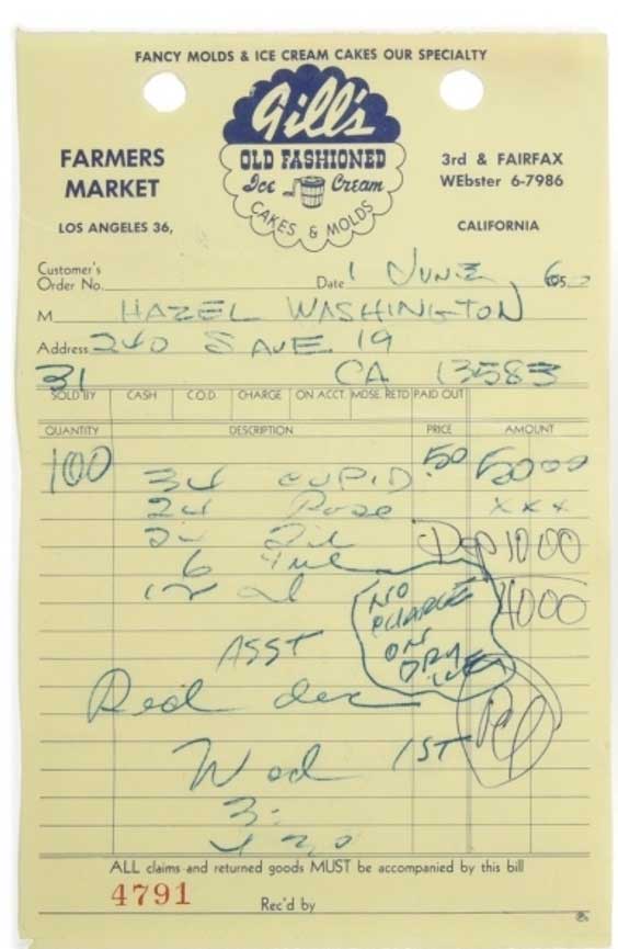 Factures pour l'anniversaire de Marilyn, au nom d' Hazel ,