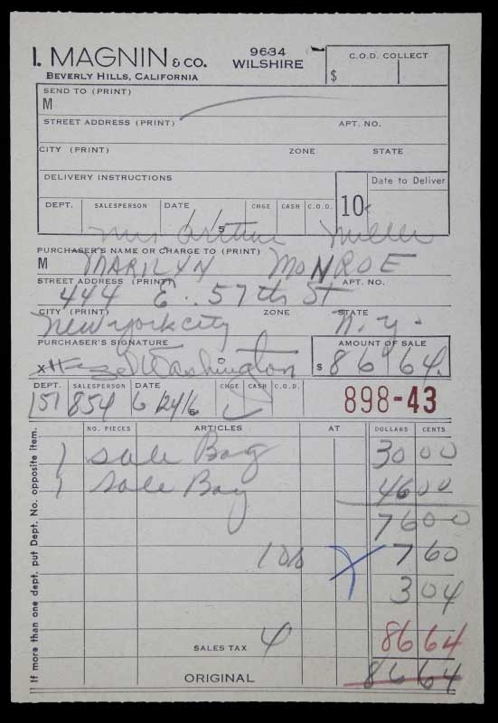 Facture de chez I.Magnin du 24 juin 1956, signée par Hazel .