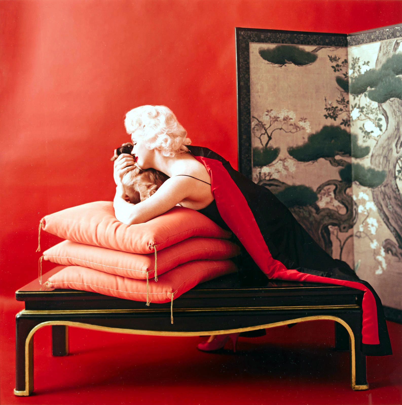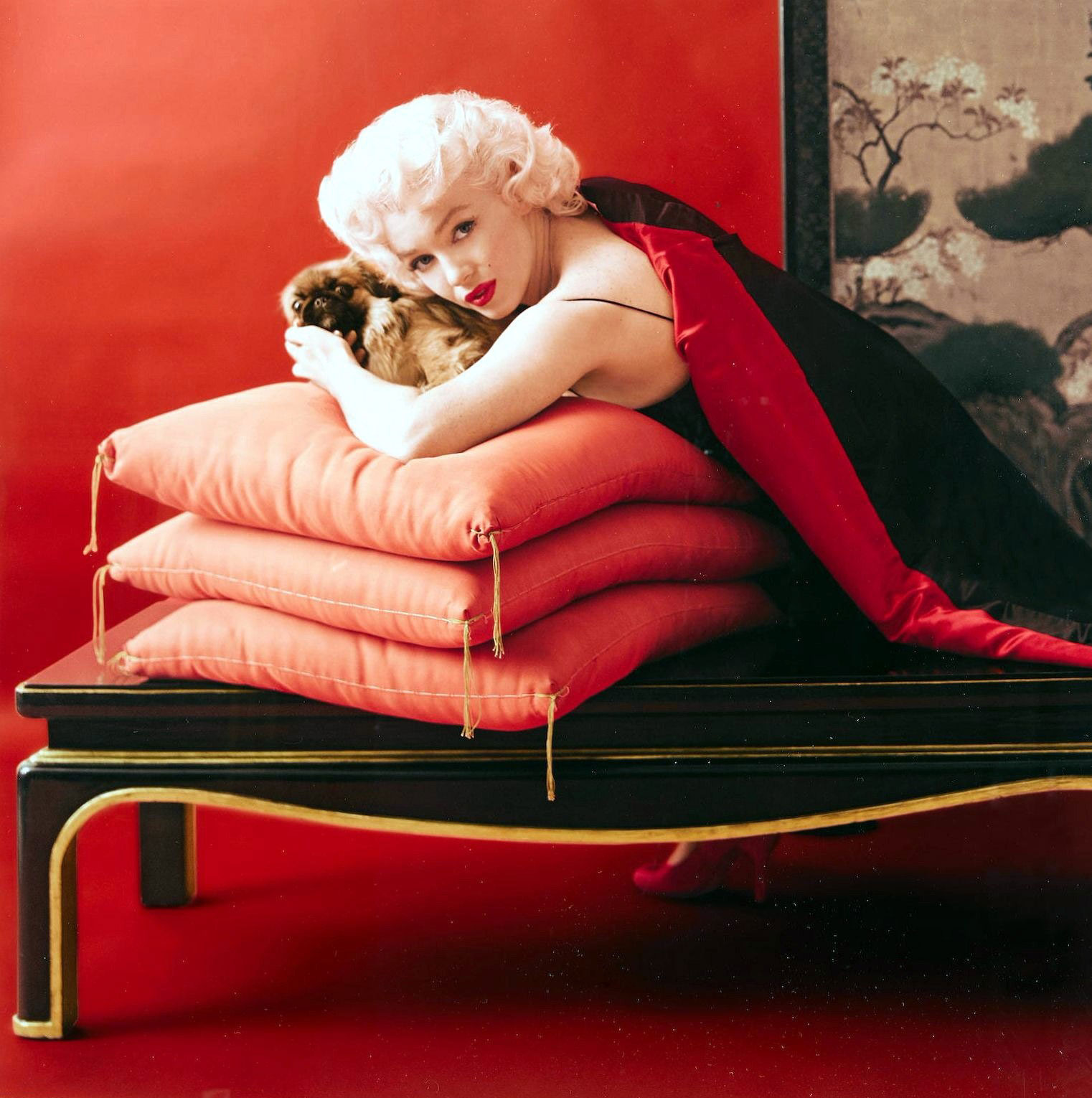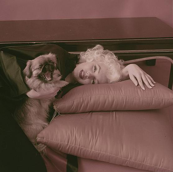 With the Pekinese dogs